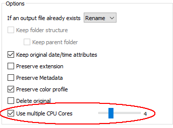By default, the processor uses only one core of your CPU. You can speed up the process by enabling "Use CPU cores".