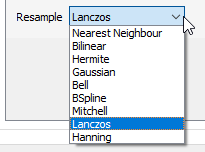 By changing the "Resample" setting, you choose the quality of downscaling. "Lanczos" is often better quality for photos.