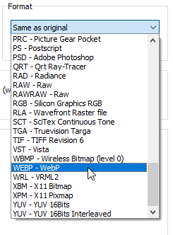 By default, you have "Same as original" in format. The processor will try to save in the same format as the source format. If that's not possible, JPEG will be used.